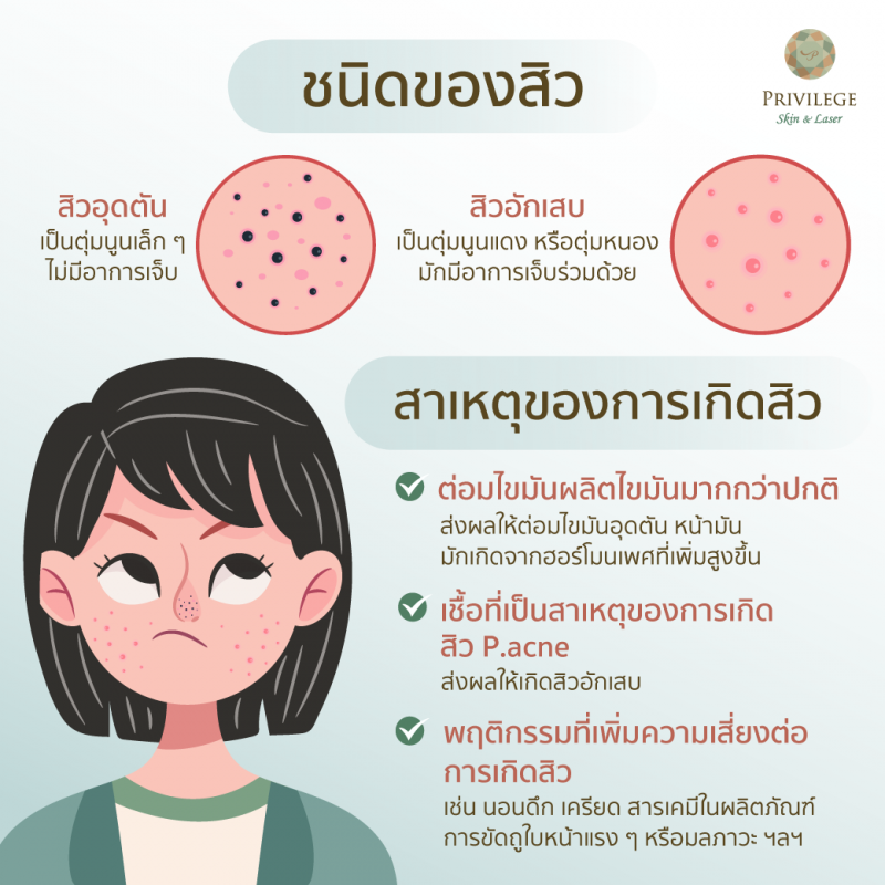 สิวเกิดได้จากหลายสาเหตุ ได้แก่